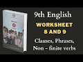 Bridge Course 9th Standard | Worksheet 8 and 9 | Clauses, Phrases, Non - finite verbs
